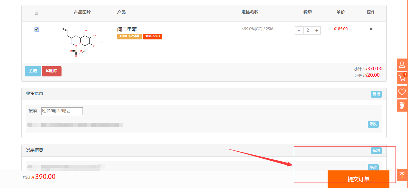 5、選好您所需產(chǎn)品后點擊進入購物車,確認產(chǎn)品無誤后,需要您正確填寫相關(guān)信息,最后點擊下方提交訂單即可。