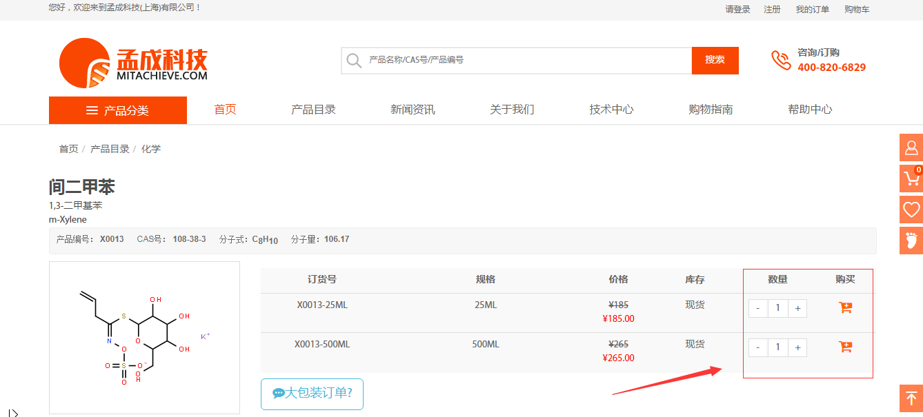 4、進入產(chǎn)品頁面后選擇您所需要的產(chǎn)品,選擇好所需產(chǎn)品數(shù)量后,點擊加入購物車即可。(若需確認產(chǎn)品的庫存情況,請聯(lián)系客服)