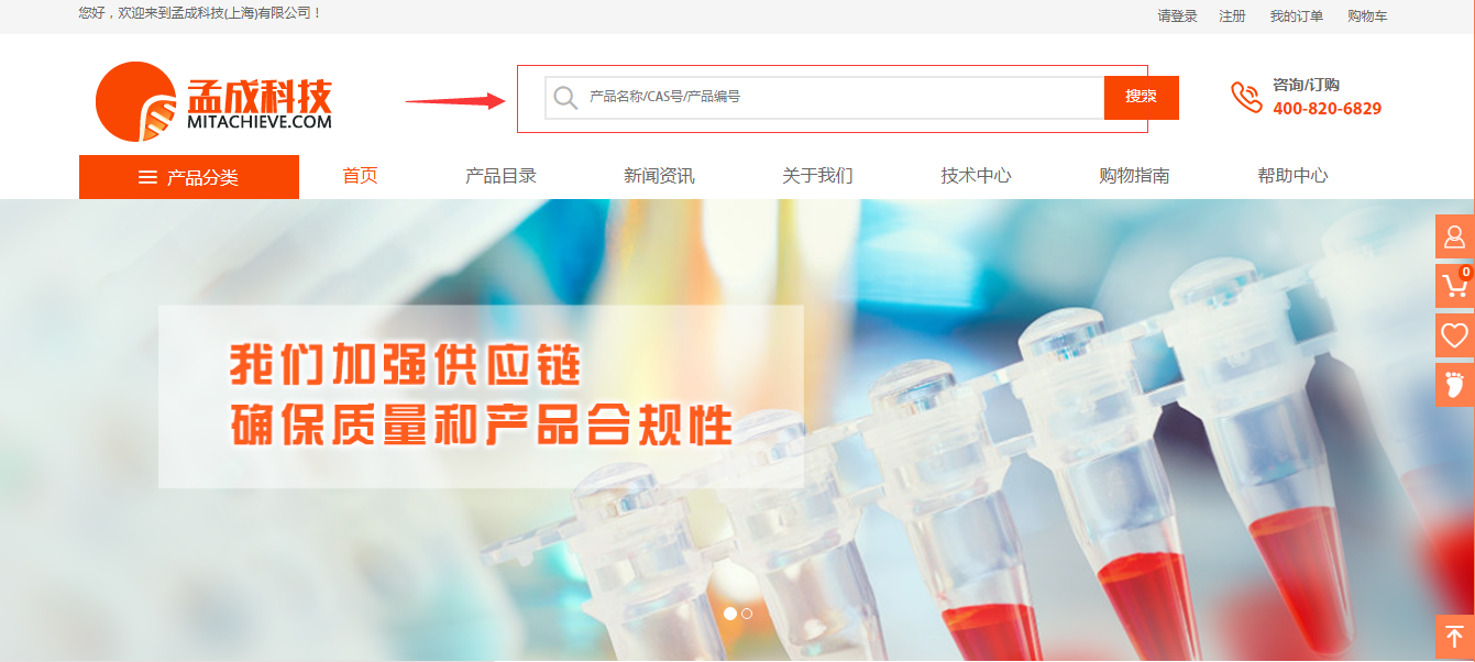 3、根據(jù)您的需求,在產(chǎn)品搜索欄內(nèi)填寫您所需要的產(chǎn)品名稱/CAS號/產(chǎn)品編號。