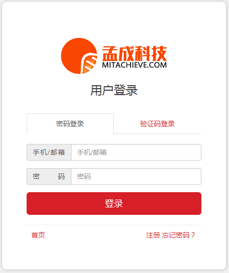 1、歡迎進入孟成科技官網(wǎng)首頁http://www.zghczy.com/,請點擊頁面右上方“登錄”按鈕。